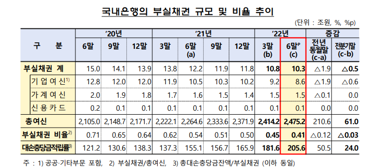 2020년보다 2021년 이 2021년보다 2022년이 은행 부실채권비율이 떨어지고 있었죠.
